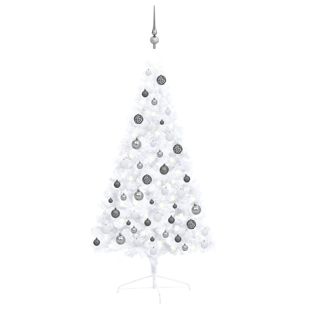 Kunstigt Halvt Juletræ Med Lys Kuglesæt 120 Hvid